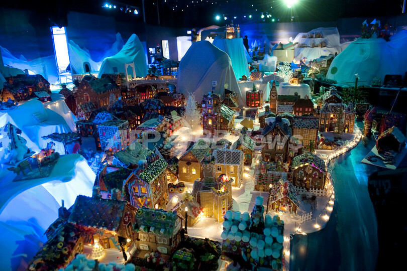 クリスマスの時期に毎年、市内の学校や幼稚園などが協力して制作しているもので、数百の建物や橋、ボートまで全てジンジャークッキーでベルゲンの街を忠実に再現している。一般公開は26日から。(c)AFP