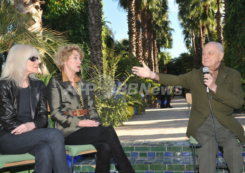 これに先駆け25日にプレスカンファレンスが開催され、サンローラン氏の公私におけるパートナーだったピエール・ベルジェ(Pierre Berge)や、かつてサンローラン氏のミューズだったルル・ドゥ・ラ・ファレーズ(Loulou de la Falaise)やベティ・カトルー(Betty Catroux)らが出席した。(c)AFP
