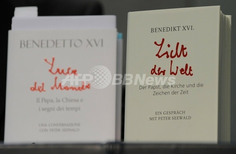 23日に発売されたベネディクト16世のインタビューをまとめた書籍『Light of the World: The Pope, the Church and the Signs of the Times(世界の光:ローマ法王と教会、そして時代のしるし)』は好調な売れ行きをみせている。(c)AFP