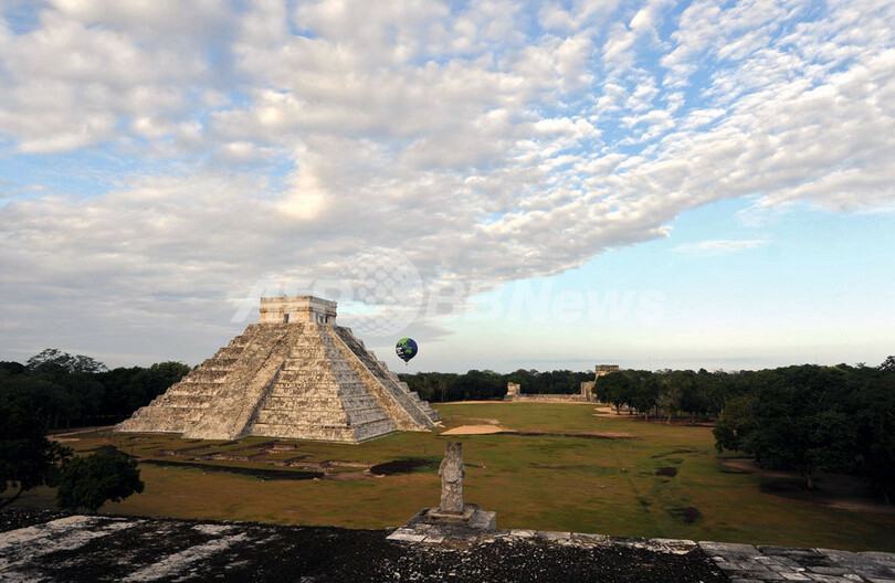 Kukulkan)ピラミッド」上空に熱気球を上げた。(c)AFP