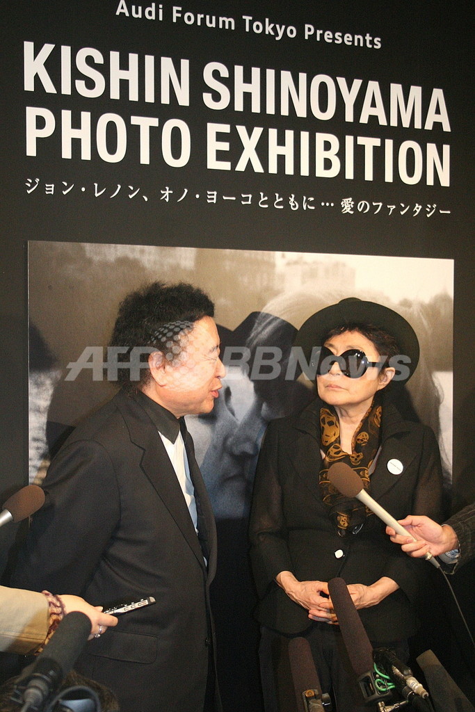 ジョン・レノンとオノ・ヨーコの秘蔵写真とともに、今回撮り下ろされた写真が東京・渋谷にあるアウディ フォーラム 東京(Audi Forum Tokyo)で世界初公開される。会場では、前衛芸術家として活躍するオノ・ヨーコのアート作品も展示。一般公開に先駆け3日に開催されたパーティでは、オノ・ヨーコが篠山紀信とともに登場した。