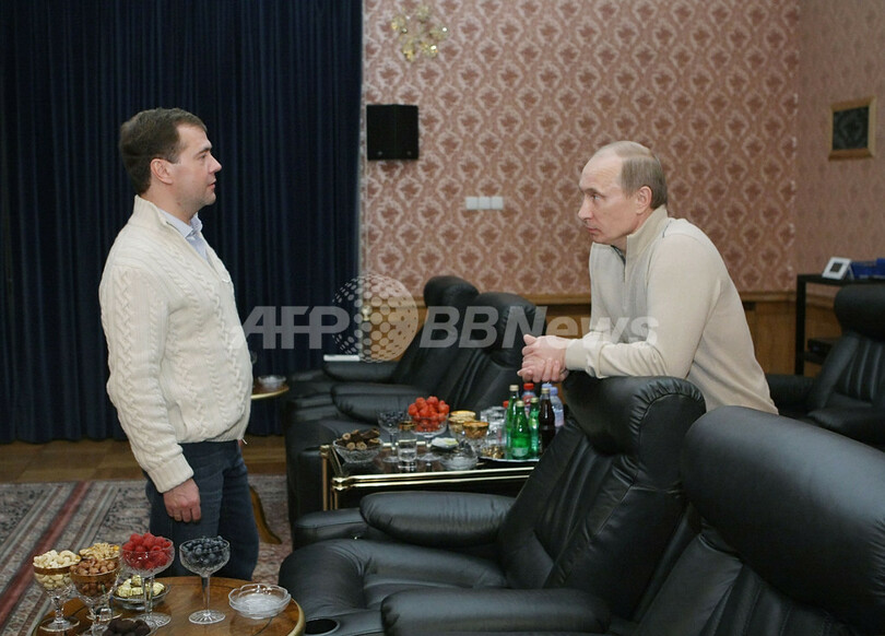 写真は、大統領別邸で非公式な意見交換を行うドメドベージェフ大統領とプーチン首相(Vladimir Putin、2010年12月3日撮影)。(c)AFP/RIA NOVOSTI/KREMLIN/VLADIMIR RODIONOV