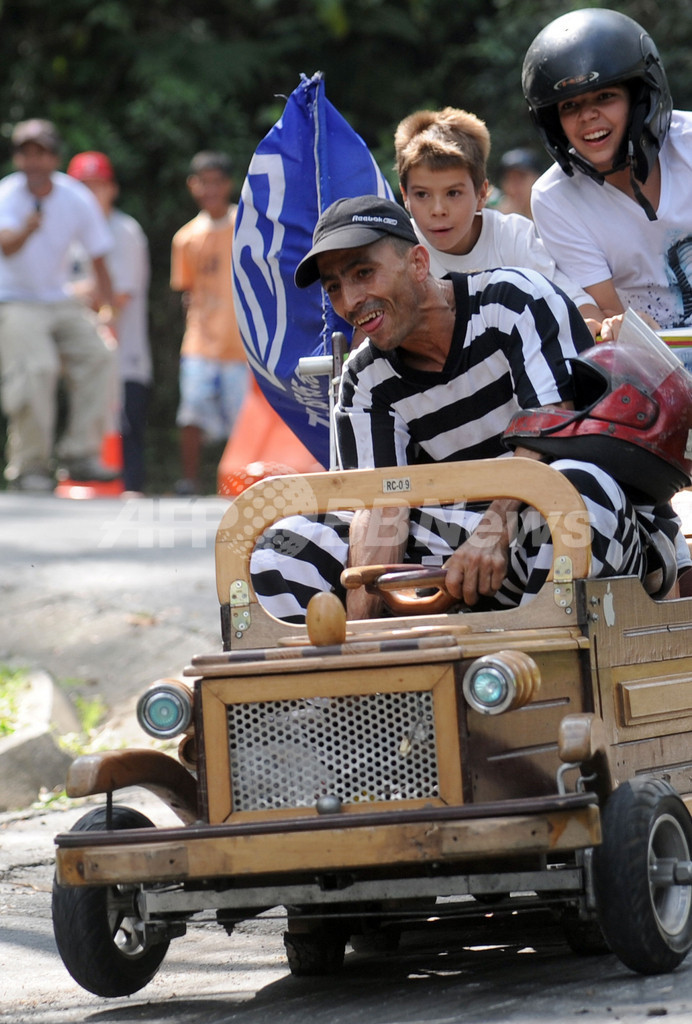 ニュース ライフ こぼれ話 下り坂で走って転んで、コロンビアの手作りカート競争 2010年12月6日 17:19 発信地:エンビガド/コロンビア [ 中南米 コロンビア ] このニュースをシェア ‹ › ❮ 4/9 ❯ 南米コロンビア・アンティオキア(Antioquia)州エンビガド(Envigado)で5日、手作りカートで坂道を下る第8回「ローラーカートフェスティバル(Roller Cart Festival)」が開かれ、人びとが思い思いのデザイン・衣装で速さを競った。(2010年12月5日撮影)(c)AFP/Raul ARBOLEDA【動画】コロンビアでゴーカート大会(YouTube/AFPBB News公式チャンネル) 画像作成中 ! 【12月6日 AFP】南米コロンビア・アンティオキア(Antioquia)州エンビガド(Envigado)で5日、手作りカートで坂道を下る第8回「ローラーカートフェスティバル(Roller Cart Festival)」が開かれた。(c)AFP ライフ 一覧へ> メディア・報道関係・法人の方向け 写真・動画 購入のお問合せ>