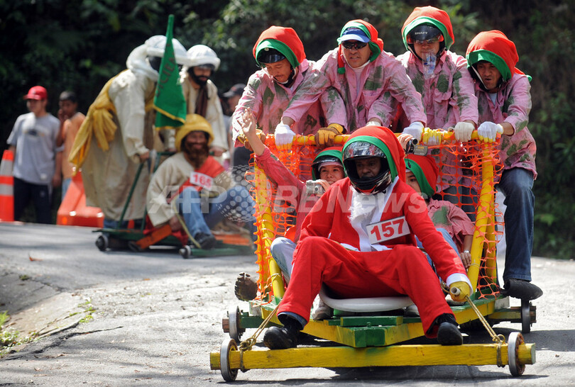 ニュース ライフ こぼれ話 下り坂で走って転んで、コロンビアの手作りカート競争 2010年12月6日 17:19 発信地:エンビガド/コロンビア [ 中南米 コロンビア ] このニュースをシェア ‹ › ❮ 2/9 ❯ 南米コロンビア・アンティオキア(Antioquia)州エンビガド(Envigado)で5日、手作りカートで坂道を下る第8回「ローラーカートフェスティバル(Roller Cart Festival)」が開かれ、人びとが思い思いのデザイン・衣装で速さを競った。(2010年12月5日撮影)(c)AFP/Raul ARBOLEDA【動画】コロンビアでゴーカート大会(YouTube/AFPBB News公式チャンネル) 画像作成中 ! 【12月6日 AFP】南米コロンビア・アンティオキア(Antioquia)州エンビガド(Envigado)で5日、手作りカートで坂道を下る第8回「ローラーカートフェスティバル(Roller Cart Festival)」が開かれた。(c)AFP ライフ 一覧へ> メディア・報道関係・法人の方向け 写真・動画 購入のお問合せ>