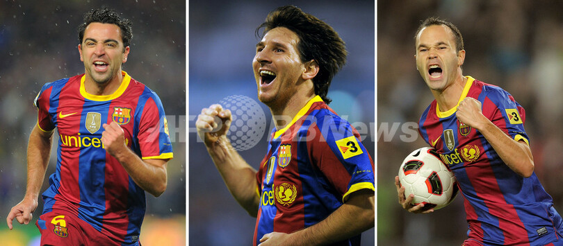 イニエスタとシャビはともにミッドフィルダー(MF)として、今年のサッカーW杯南アフリカ大会(2010 World Cup)でのスペイン代表の優勝にも貢献した。アルゼンチン代表フォワード(FW)として同大会に出場したメッシは、バルセロナでの活躍で昨年すでにバロンドールを受賞している。