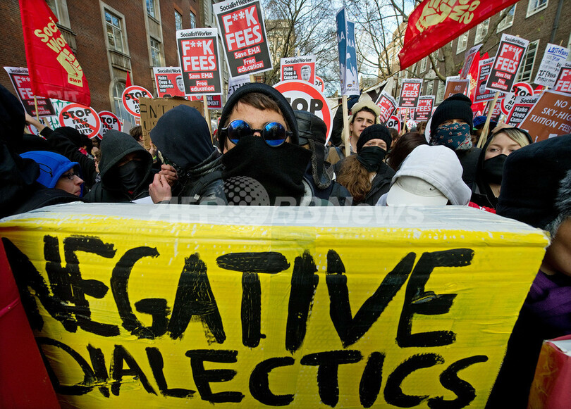 【12月10日 AFP】(写真追加、一部更新)英下院は9日、大学の授業料を3倍に値上げする法案を可決し、ロンドン(London)ではこれに抗議する数千人の学生デモの一部が暴徒化、チャールズ皇太子(Prince Charles)とカミラ夫人(Duchess of Cornwall)が乗った車を襲撃した。2人にけがはなかった。