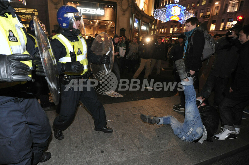 【12月10日 AFP】(写真追加、一部更新)英下院は9日、大学の授業料を3倍に値上げする法案を可決し、ロンドン(London)ではこれに抗議する数千人の学生デモの一部が暴徒化、チャールズ皇太子(Prince Charles)とカミラ夫人(Duchess of Cornwall)が乗った車を襲撃した。2人にけがはなかった。