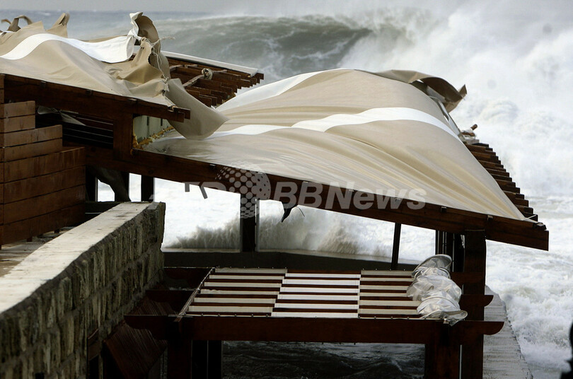 暴風雨に襲われたレバノンとイスラエルの沿岸では、風速28メートルの強風が吹き荒れ、波の高さは10メートルに達した。エジプト・アレクサンドリア(Alexandria)では、豪雨により人口密集地区にある工場が倒壊し、少なくとも3人が死亡した。地中海南東岸ではこのところ、例年になく気温が高く、雨の降らない状況が続いていた。(c)AFP/Boncompagni