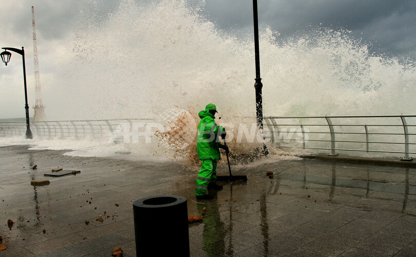 暴風雨に襲われたレバノンとイスラエルの沿岸では、風速28メートルの強風が吹き荒れ、波の高さは10メートルに達した。エジプト・アレクサンドリア(Alexandria)では、豪雨により人口密集地区にある工場が倒壊し、少なくとも3人が死亡した。地中海南東岸ではこのところ、例年になく気温が高く、雨の降らない状況が続いていた。(c)AFP/Boncompagni