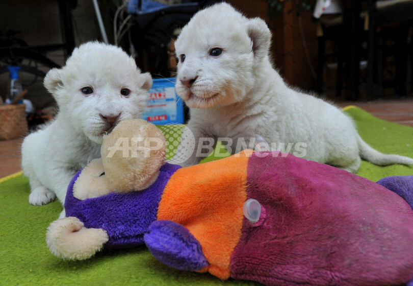 ニュース ライフ こぼれ話 ホワイトライオンの双子、元気に育ってます ドイツ 2010年12月16日 20:42 発信地:ホーデンハーゲン/ドイツ [ ヨーロッパ ドイツ ] このニュースをシェア ‹ › ❮ 2/5 ❯ ドイツ・ホーデンハーゲン(Hodenhagen)にあるセレンゲティ公園(Serengeti Park)で、ぬいぐるみを見つめるホワイトライオンの赤ちゃん、ニーザ(Niza、左)とネロ(Nero、2010年12月15日撮影)。(c)AFP/JOCHEN LUEBKE 画像作成中 ! 【12月16日 AFP】ドイツ北部ホーデンハーゲン(Hodenhagen)のセレンゲティ公園(Serengeti Park)で、生後2週間のホワイトライオンの双子が元気に育っている。ネロ(Nero)とニーザ(Niza)の兄妹は2日、帝王切開で誕生した。現在は動物園の係員が哺乳瓶で授乳し2匹を育てており、動物園の環境に慣れたころに、園内の仲間のライオンの群れに放たれる予定だ。(c)AFP ライフ 一覧へ> メディア・報道関係・法人の方向け 写真・動画 購入のお問合せ>