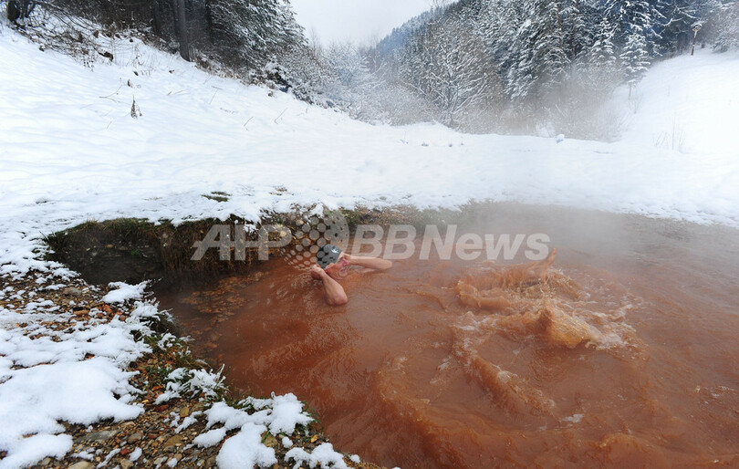 【12月17日 AFP】スロバキア・リフトプ(Liptov)地方のKalameny村近くの天然温泉。14日、気温が氷点下6度まで下がる中、入浴を楽しむ男性の姿が見られた。同地方には、営業目的ではない天然温泉が多数ある。(c)AFP