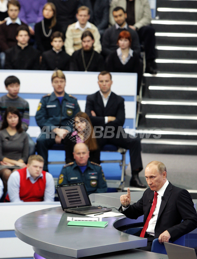 【12月17日 AFP】ロシアのウラジーミル・プーチン(Vladimir Putin)首相は16日、毎年恒例となっている国営テレビの生放送での国民との対話で、4時間半にわたって一般の人々からの質問に応じた。