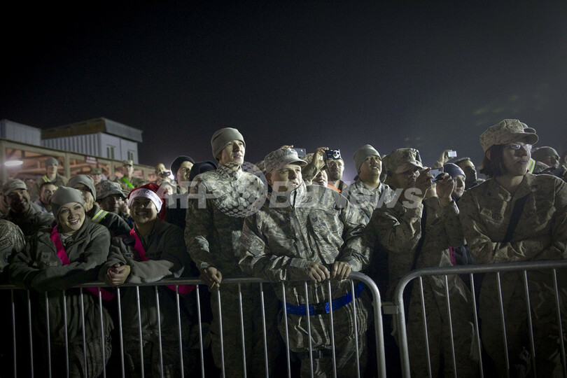 【12月18日 AFP】アフガニスタンのカンダハル空軍基地(Kandahar Air Field)で16日、クリスマス期間中の米軍慰労イベント「ホリデー・トループ・ビジット(Holiday Troop Visit)」が開かれ、米俳優ロビン・ウィリアムズ(Robin Williams)や米自転車選手ランス・アームストロング(Lance Armstrong)、米俳優ルイス・ブラック(Lewis Black)らがパフォーマンスを披露した。(c)AFP
