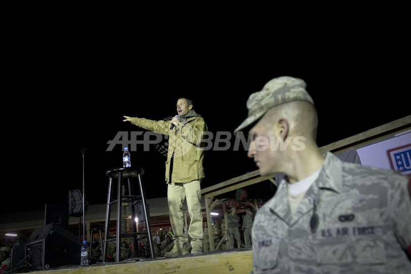 【12月18日 AFP】アフガニスタンのカンダハル空軍基地(Kandahar Air Field)で16日、クリスマス期間中の米軍慰労イベント「ホリデー・トループ・ビジット(Holiday Troop Visit)」が開かれ、米俳優ロビン・ウィリアムズ(Robin Williams)や米自転車選手ランス・アームストロング(Lance Armstrong)、米俳優ルイス・ブラック(Lewis Black)らがパフォーマンスを披露した。(c)AFP
