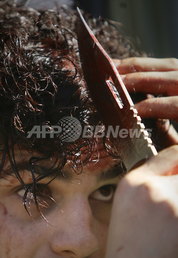 【12月19日 AFP】16日から17日にかけて、イスラム教シーア派(Shiite)の最大の宗教行事、アシュラ(Ashura)が各地で行われた。アシュラは信者が自らの体を叩いたり、鎖や刃物で自分の体をむち打つなどして、7世紀に殉教したイスラム教の預言者ムハンマド(Mohammed)の孫にあたるイマーム・フセイン(Imam Hussein)師を悼む。(c)AFP
