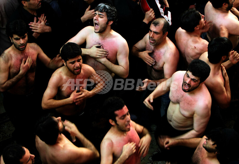 【12月19日 AFP】16日から17日にかけて、イスラム教シーア派(Shiite)の最大の宗教行事、アシュラ(Ashura)が各地で行われた。アシュラは信者が自らの体を叩いたり、鎖や刃物で自分の体をむち打つなどして、7世紀に殉教したイスラム教の預言者ムハンマド(Mohammed)の孫にあたるイマーム・フセイン(Imam Hussein)師を悼む。(c)AFP
