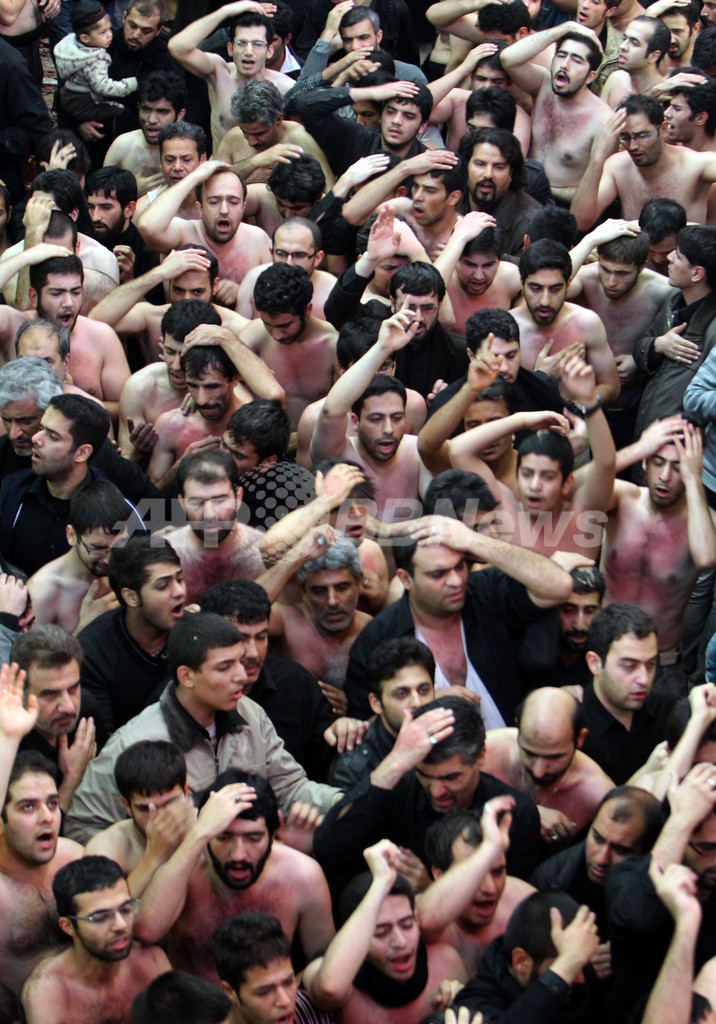 写真は、イラン・テヘラン(Tehran)で体を叩く男性たち(2010年12月16日撮影)。(c)AFP/ATTA KENARE