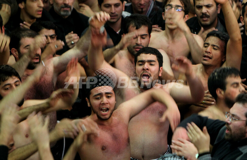 【12月19日 AFP】16日から17日にかけて、イスラム教シーア派(Shiite)の最大の宗教行事、アシュラ(Ashura)が各地で行われた。アシュラは信者が自らの体を叩いたり、鎖や刃物で自分の体をむち打つなどして、7世紀に殉教したイスラム教の預言者ムハンマド(Mohammed)の孫にあたるイマーム・フセイン(Imam Hussein)師を悼む。(c)AFP