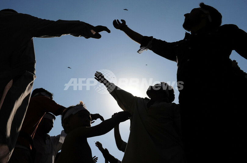 写真は、パキスタン・カラチ(Karachi)で体を叩く男性たち(2010年12月17日撮影)。(c)AFP/Asif HASSAN