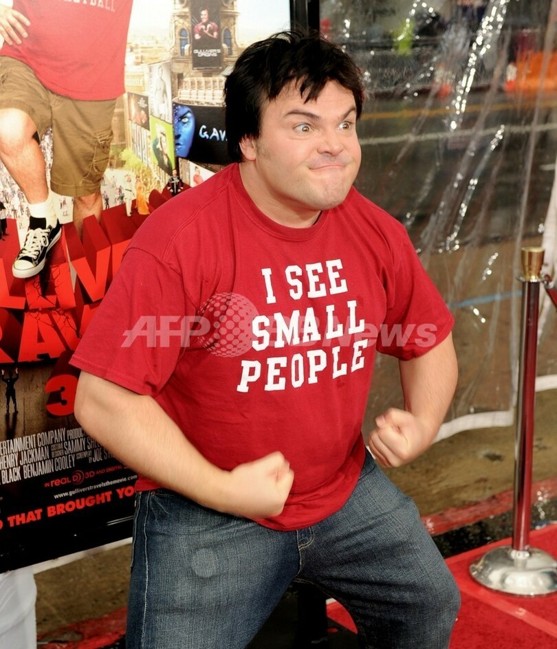 ジャック・ブラック(Jack Black)がガリバーを演じる新作コメディー『ガリバー旅行記(Gulliver's Travels)』のプレミア上映会が18日、米ロサンゼルス(Los Angeles)で開催された。写真は、レッドカーペットに登場したジャック・ブラック(2010年12月18日撮影)。(c)AFP/Getty Images/Kevin Winter