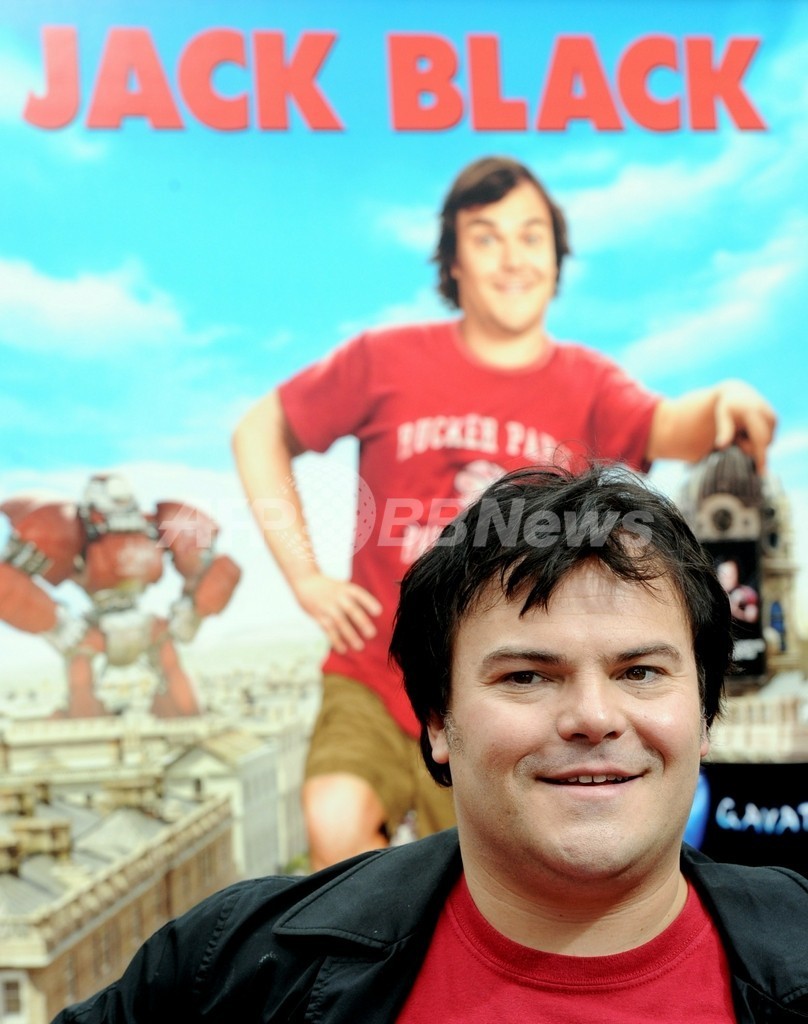ジャック・ブラック(Jack Black)がガリバーを演じる新作コメディー『ガリバー旅行記(Gulliver's Travels)』のプレミア上映会が18日、米ロサンゼルス(Los Angeles)で開催された。写真は、レッドカーペットに登場したジャック・ブラック(2010年12月18日撮影)。(c)AFP/Getty Images/Kevin Winter