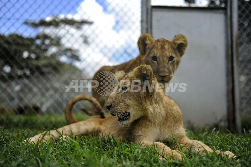 写真は施設内の生後7か月のライオンの子どもたち(2010年12月14日撮影)。(c)AFP/Tony KARUMBA
