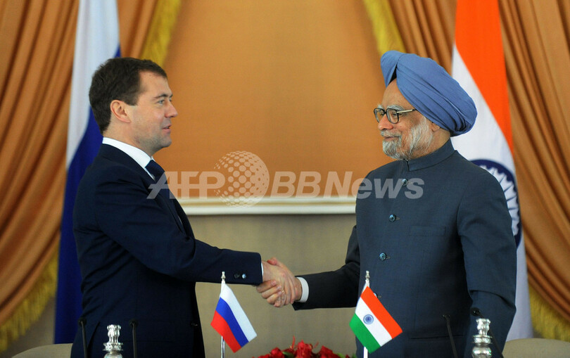 【12月21日 AFP】インドを訪問中のドミトリー・メドベージェフ(Dmitry Medvedev)露大統領とインドのマンモハン・シン(Manmohan Singh)首相は21日、ニューデリー(New Delhi)で会談し、エネルギー開発や第5世代戦闘機の共同開発など幅広い分野で合意した。