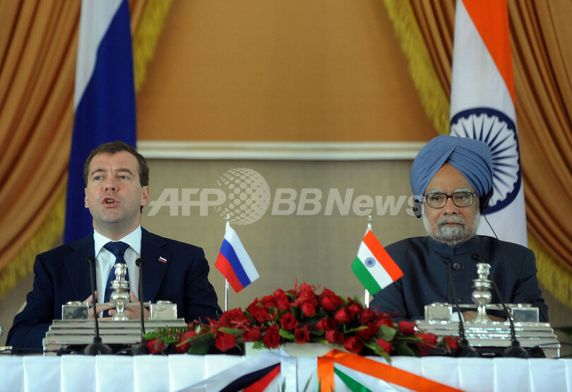 【12月21日 AFP】インドを訪問中のドミトリー・メドベージェフ(Dmitry Medvedev)露大統領とインドのマンモハン・シン(Manmohan Singh)首相は21日、ニューデリー(New Delhi)で会談し、エネルギー開発や第5世代戦闘機の共同開発など幅広い分野で合意した。