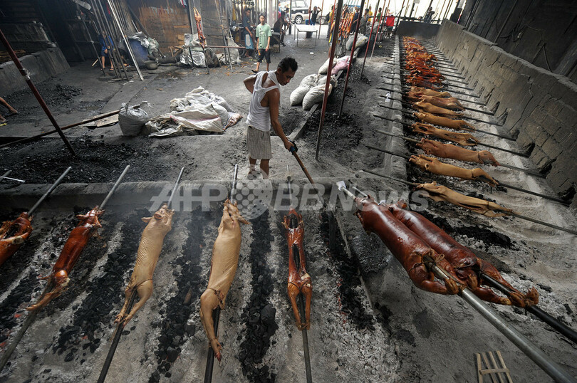 ニュース ライフ フィリピンのXマスには欠かせない、ブタの丸焼き「レチョン」 2010年12月24日 11:44 発信地:マニラ/フィリピン [ アジア・オセアニア フィリピン ] このニュースをシェア ‹ › ❮ 18/18 ❯ フィリピンの首都マニラ(Manila)で丸焼きになったブタ。「レチョン(Lechon)と呼ばれるブタの丸焼きは、クリスマスや新年など、フィリピンの祭事には欠かせない定番の料理となっている。(2010年12月23日撮影)(c)AFP/NOEL CELIS 画像作成中 ! 【12月24日 AFP】フィリピンの祭事で定番の料理、ブタの丸焼き「レチョン(Lechon)」。(c)AFP ライフ 一覧へ> メディア・報道関係・法人の方向け 写真・動画 購入のお問合せ>