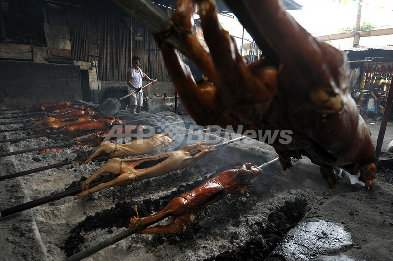 ニュース ライフ フィリピンのXマスには欠かせない、ブタの丸焼き「レチョン」 2010年12月24日 11:44 発信地:マニラ/フィリピン [ アジア・オセアニア フィリピン ] このニュースをシェア ‹ › ❮ 17/18 ❯ フィリピンの首都マニラ(Manila)で丸焼きになったブタ。「レチョン(Lechon)と呼ばれるブタの丸焼きは、クリスマスや新年など、フィリピンの祭事には欠かせない定番の料理となっている。(2010年12月23日撮影)(c)AFP/NOEL CELIS 画像作成中 ! 【12月24日 AFP】フィリピンの祭事で定番の料理、ブタの丸焼き「レチョン(Lechon)」。(c)AFP ライフ 一覧へ> メディア・報道関係・法人の方向け 写真・動画 購入のお問合せ>