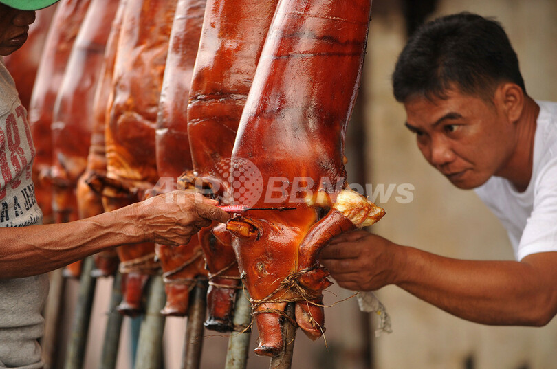 ニュース ライフ フィリピンのXマスには欠かせない、ブタの丸焼き「レチョン」 2010年12月24日 11:44 発信地:マニラ/フィリピン [ アジア・オセアニア フィリピン ] このニュースをシェア ‹ › ❮ 14/18 ❯ フィリピンの首都マニラ(Manila)市内の商店に並んだブタの丸焼き「レチョン(Lechon)」。レチョンは、クリスマスや新年など、フィリピンの祭事には欠かせない定番の料理となっている。(2010年12月23日撮影)(c)AFP/NOEL CELIS 画像作成中 ! 【12月24日 AFP】フィリピンの祭事で定番の料理、ブタの丸焼き「レチョン(Lechon)」。(c)AFP ライフ 一覧へ> メディア・報道関係・法人の方向け 写真・動画 購入のお問合せ>