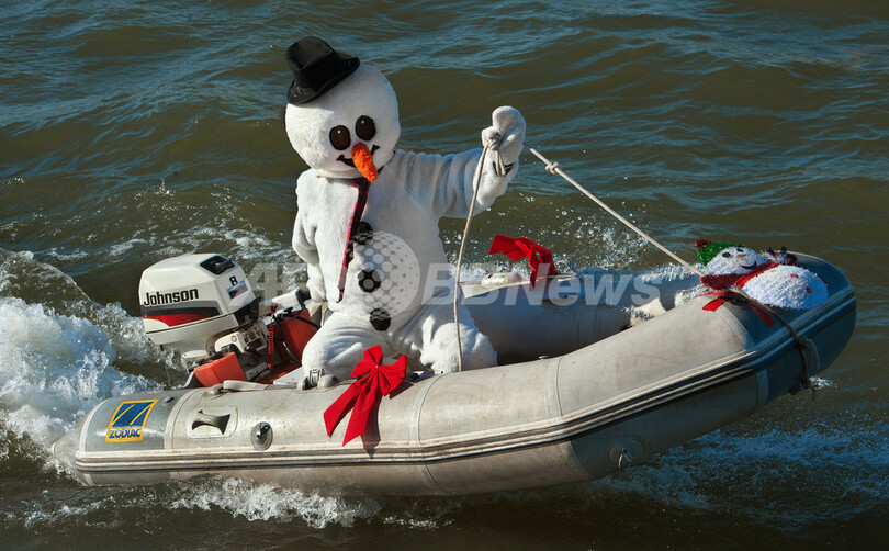 写真はポトマック川(Potomac River)で、ボートに乗り込むスノーマン(2010年12月24日撮影)。(c)AFP/Paul J. Richards