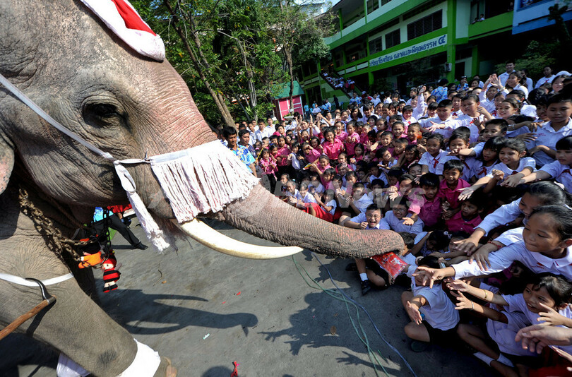 ニュース ライフ こぼれ話 ゾウのサンタが学童にプレゼント、タイ 2010年12月25日 20:34 発信地:アユタヤ/タイ [ アジア・オセアニア タイ ] このニュースをシェア ‹ › ❮ 7/7 ❯ タイのアユタヤ(Ayutthaya)県の学校にクリスマスイブの24日、サンタ姿のゾウが登場し、子どもたちにクリスマスプレゼントを贈った。このイベントは、タイでのクリスマス人気向上を目指したもの。(2010年12月24日撮影)。(c)AFP/PORNCHAI KITTIWONGSAKUL 画像作成中 ! 【12月25日 AFP】タイのアユタヤ(Ayutthaya)県の学校にクリスマスイブの24日、サンタ姿のゾウが登場し、子どもたちにクリスマスプレゼントを贈った。このイベントは、タイでのクリスマス人気向上を目指したもの。(c)AFP ライフ 一覧へ> メディア・報道関係・法人の方向け 写真・動画 購入のお問合せ>
