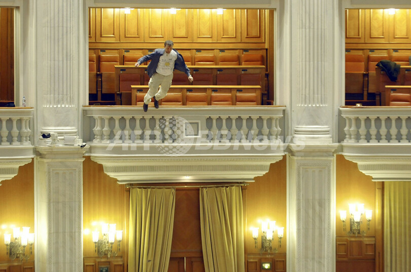 【12月27日 AFP】ルーマニアの首都ブカレスト(Bucharest)の議会で23日、議事の進行中に国営ルーマニア・テレビ(Romanian National Television)の技術職員(40)がバルコニーから飛び降りる事件があった。議会では当時、エミル・ボック(Emil BOC)首相が内閣不信任案の投票に先立って演説していた。
