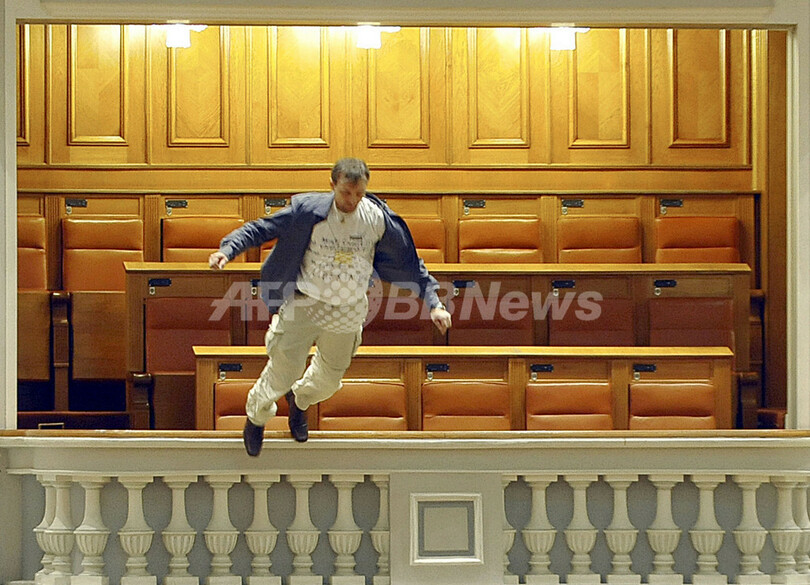 【12月27日 AFP】ルーマニアの首都ブカレスト(Bucharest)の議会で23日、議事の進行中に国営ルーマニア・テレビ(Romanian National Television)の技術職員(40)がバルコニーから飛び降りる事件があった。議会では当時、エミル・ボック(Emil BOC)首相が内閣不信任案の投票に先立って演説していた。