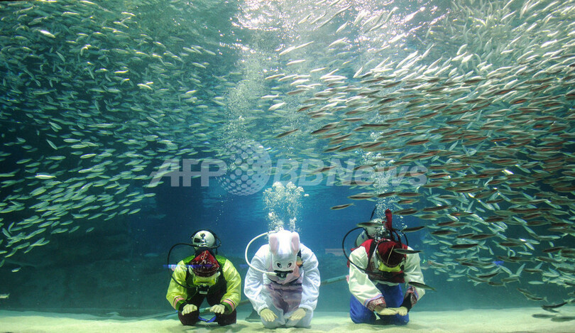 ニュース ライフ こぼれ話 一足お先に卯年をお祝い、韓国・ソウルの水族館 2010年12月31日 17:14 発信地:ソウル/韓国 [ 韓国・北朝鮮 韓国 ] このニュースをシェア ‹ › ❮ 6/7 ❯ 韓国・ソウル(Seoul)の大型複合施設COEXの水族館で31日、新年を前に来年のえとの「卯(う)」にちなんでウサギの衣装を着たダイバーが来館者を楽しませた(2010年12月31日撮影)。(c)AFP/PARK JI-HWAN 画像作成中 ! 【12月31日 AFP】韓国・ソウル(Seoul)の大型複合施設COEX内の水族館で31日、新年を前に来年のえとの「卯(う)」にちなんでウサギの衣装を着たダイバーが来館者を楽しませた。(c)AFP ライフ 一覧へ> メディア・報道関係・法人の方向け 写真・動画 購入のお問合せ>