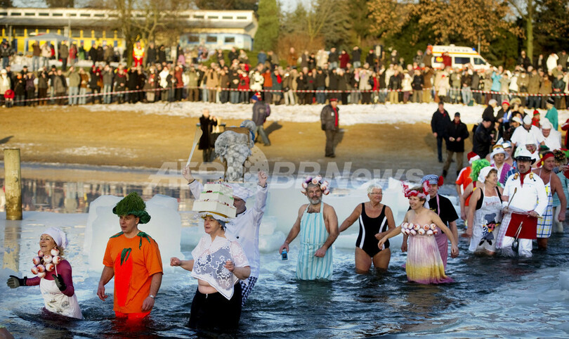 ニュース ライフ こぼれ話 ドイツで「仮装」寒中水泳 2011年1月9日 16:19 発信地:ベルリン/ドイツ [ ヨーロッパ ドイツ ] このニュースをシェア ‹ › ❮ 6/14 ❯ ドイツ首都ベルリン(Berlin)のオランケ湖(Orankesee)で8日、新春恒例の寒中水泳大会が開かれた。参加者はコスチュームを着て湖に飛び込んだ(2011年1月8日撮影)。(c)AFP/ODD ANDERSEN 画像作成中 ! 【1月9日 AFP】ドイツ首都ベルリン(Berlin)のオランケ湖(Orankesee)で8日、新春恒例の寒中水泳大会が開かれた。参加者はコスチュームを着て湖に飛び込んだ。(c)AFP ライフ 一覧へ> メディア・報道関係・法人の方向け 写真・動画 購入のお問合せ>