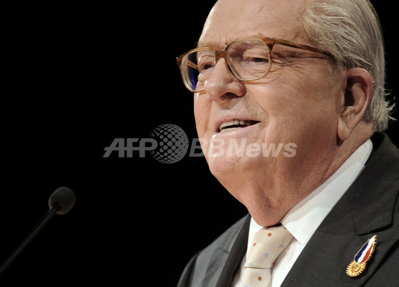 国民戦線はマリーヌ・ルペン氏の父親のルペン元党首が1972年に設立した。前日、仏北部の街ツール(Tours)で開幕した党集会の冒頭で引退を宣言するまで、約40年にわたり同氏が党首の座にあった。(c)AFP/Roland Lloyd Parry