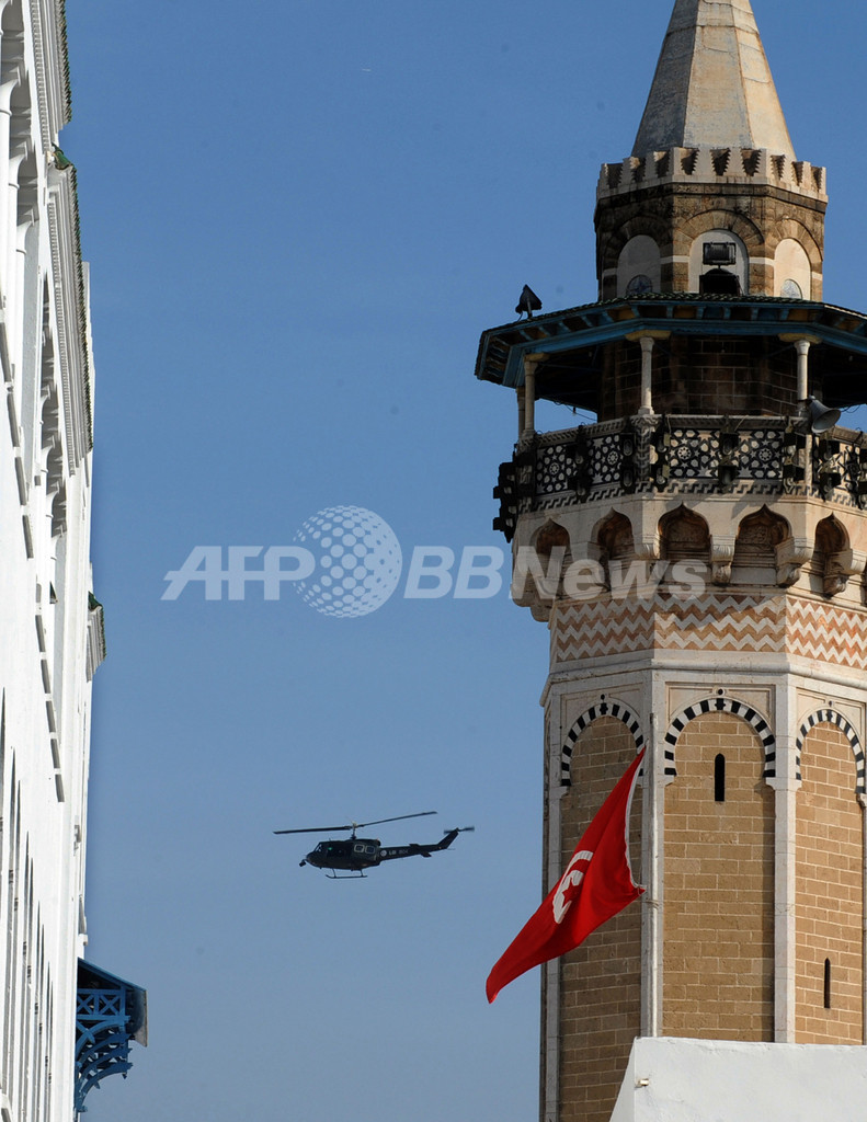 首相はまた、ベンアリ前大統領の国外脱出を招いた暴動による死者は78人で、経済損失は16億ユーロ(約1760億円)にのぼったと発表した。(c)AFP/Dario Thuburn