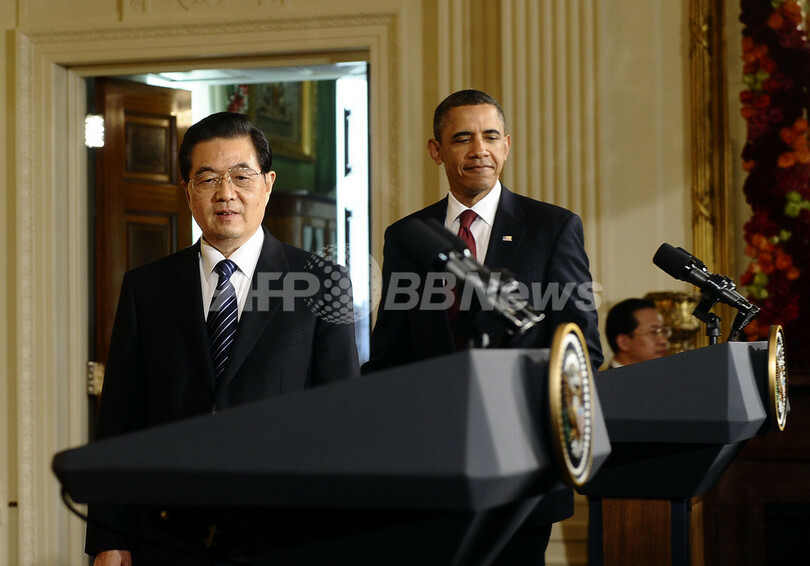 中国では、2010年のノーベル平和賞を受賞した民主活動家・劉暁波(Liu Xiaobo)氏が獄中に置かれていることから、前年の平和賞受賞でもあるオバマ大統領には、今回の胡主席との会談で人権問題を取り上げるべきだとのプレッシャーに直面していた。こうしたなかでオバマ大統領は米中会談に先立ち、「中国の政治体制が米国と異なることは承知している」としたうえで、会談の議題から人権問題を避けることはしないと言明していた。(c)AFP/Stephen Collinson