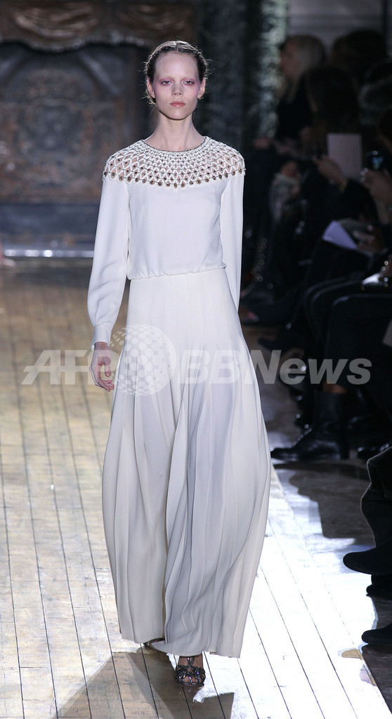 【1月27日 AFP】フランス・パリ市内で24日から27日まで11年春夏パリ・オートクチュールコレクションが開かれている。26日には、マリア・グラツィア・キウリ(Maria Grazia Chiuri)とピエールパオロ・ピッチョーリ(PierPaolo Piccioli)が手がける「ヴァレンティノ(VALENTINO)」が新作を発表した。(c)AFP