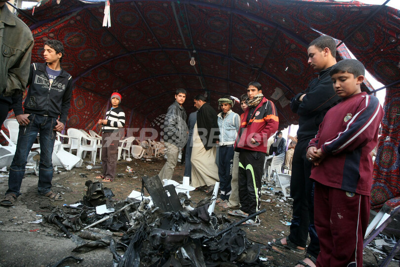 首都での攻撃としては、前年11月2日にシーア派信者が多く住む地区で自動車爆弾11個が相次いで爆発し、63人が死亡、約300人が負傷した以来の規模。前週にはシーア派の聖地カルバラ(Karbala)で巡礼者をねらった自動車爆弾が相次いで爆発し、57人が死亡した。(c)AFP/Ammar Karim