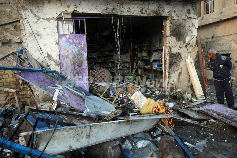 首都での攻撃としては、前年11月2日にシーア派信者が多く住む地区で自動車爆弾11個が相次いで爆発し、63人が死亡、約300人が負傷した以来の規模。前週にはシーア派の聖地カルバラ(Karbala)で巡礼者をねらった自動車爆弾が相次いで爆発し、57人が死亡した。(c)AFP/Ammar Karim