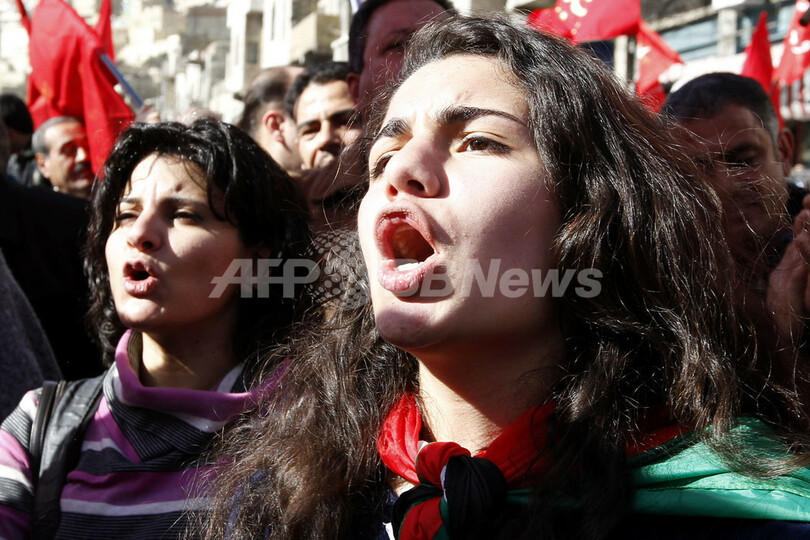 ニュース 政治・経済 ヨルダンでデモ、内閣退陣と政治・経済改革求める 2011年1月29日 15:58 発信地:アンマン/ヨルダン [ 中東・北アフリカ ヨルダン ] このニュースをシェア ‹ › ❮ 4/4 ❯ ヨルダン首都アンマン(Amman)で行われた内閣退陣と政治・経済改革を求める抗議デモで、スローガンを叫ぶ女性(2011年1月28日撮影)。(c)AFP/KHALIL MAZRAAWI 画像作成中 ! 【1月29日 AFP】ヨルダンの首都アンマン(Amman)で28日、エジプトやチュニジアでの抗議デモをきっかけとした、同国の内閣退陣と政治・経済改革を求める抗議デモが行われ、数千人が平和的にデモ行進した。(c)AFP 政治・経済 一覧へ> メディア・報道関係・法人の方向け 写真・動画 購入のお問合せ>