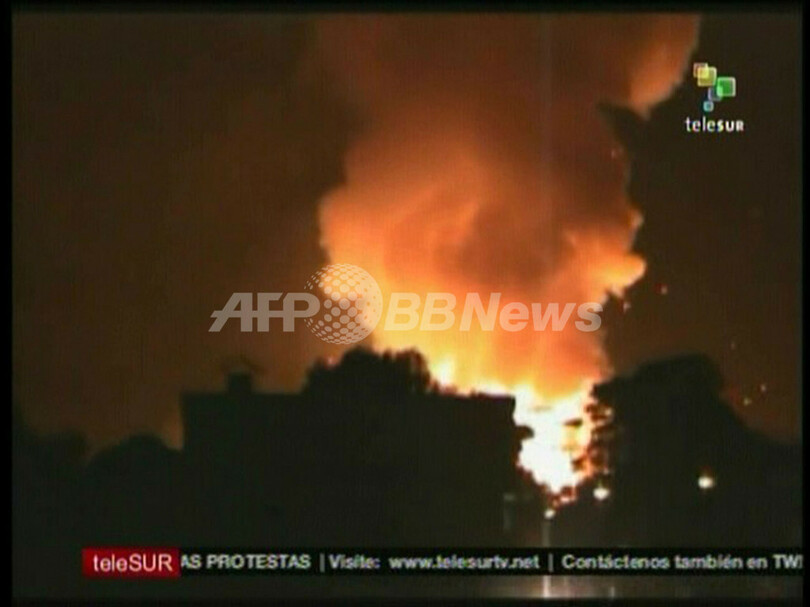 写真は、ベネズエラのテレビ局テレスル(Telesur)が放映した爆発・炎上する兵器庫(2011年1月30日撮影)。(c)AFP/TELESUR
