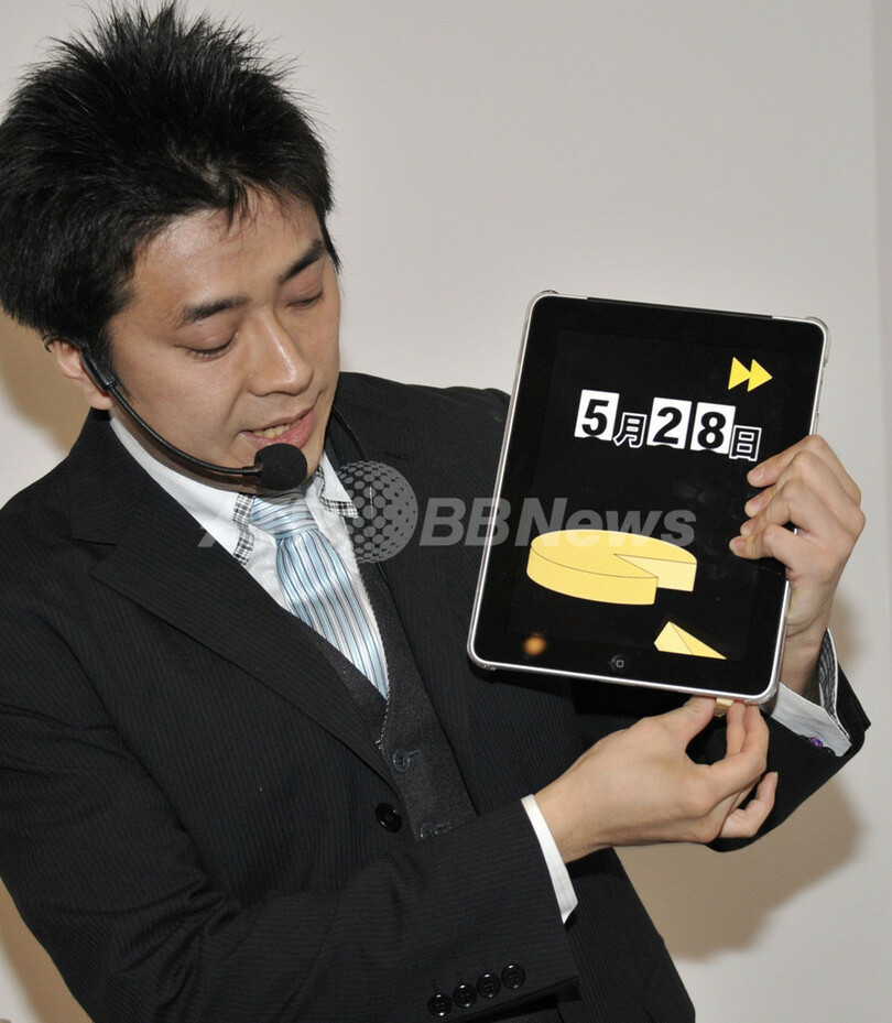 都内・国立新美術館(National Arts Center)で開催中の第14回文化庁メディア芸術祭(Japan Media Arts Festival)で、マジシャンの内田伸哉(Shinya Uchida)さんが、タブレット型端末iPadを使ったマジックショー「iPad magic」を披露した。内田さんはメディア芸術祭のエンターテインメント部門、奨励賞を獲得した(2011年2月1日撮影)。(c)AFP/Yoshikazu TSUNO