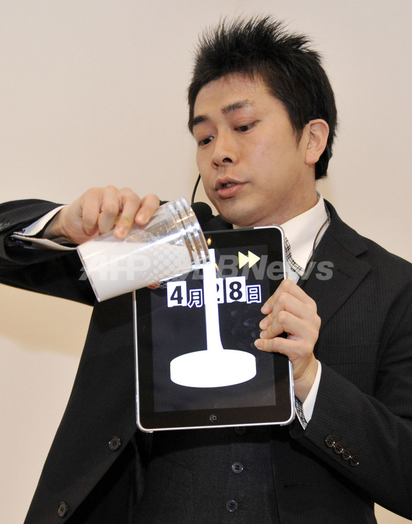 都内・国立新美術館(National Arts Center)で開催中の第14回文化庁メディア芸術祭(Japan Media Arts Festival)で、マジシャンの内田伸哉(Shinya Uchida)さんが、タブレット型端末iPadを使ったマジックショー「iPad magic」を披露した。内田さんはメディア芸術祭のエンターテインメント部門、奨励賞を獲得した(2011年2月1日撮影)。(c)AFP/Yoshikazu TSUNO