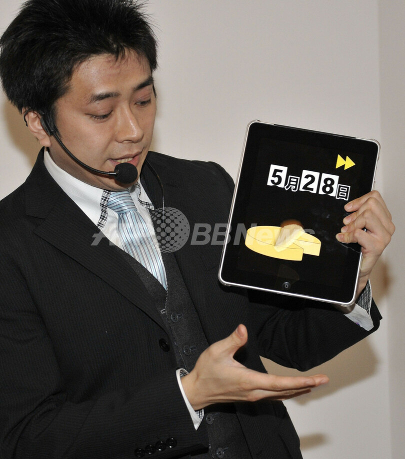都内・国立新美術館(National Arts Center)で開催中の第14回文化庁メディア芸術祭(Japan Media Arts Festival)で、マジシャンの内田伸哉(Shinya Uchida)さんが、タブレット型端末iPadを使ったマジックショー「iPad magic」を披露した。内田さんはメディア芸術祭のエンターテインメント部門、奨励賞を獲得した(2011年2月1日撮影)。(c)AFP/Yoshikazu TSUNO