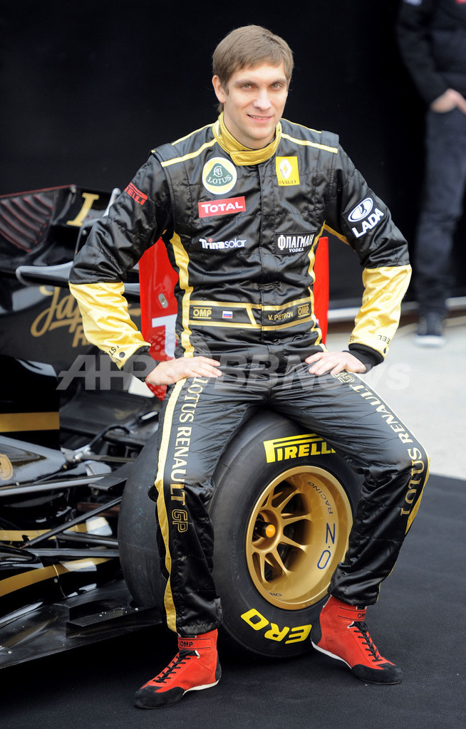 写真は、R31を披露するドライバーのビタリー・ペトロフ(Vitaly Petrov、ロシア、2011年1月31日撮影)。(c)AFP/JOSE JORDAN