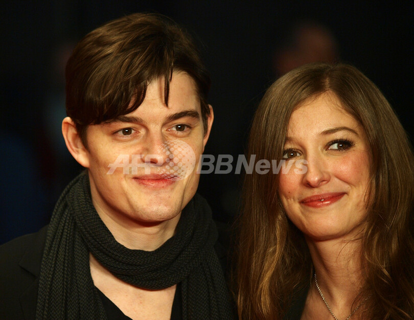 英ロンドン(London)のレスタースクエア(Leicester Square)で1日、サム・ライリー(Sam Riley)やヘレン・ミレン(Helen Mirren)らが出演する映画『ブライトン・ロック(Brighton Rock)』の欧州プレミアが行われた。写真は、レッドカーペットに登場したサム・ライリー(左)と妻で女優のアレクサンドラ・マリア・ララ(Alexandra Maria Lara、2011年2月1日撮影)。(c)AFP/MAX NASH